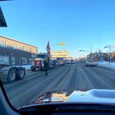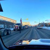 Making Their Views Known Representatives of a Freedom Convoy – including several truck tractors without trailers and smaller private vehicles – wended their way through downtown Whitehorse this morning, blowing their horns.
