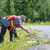 Pulling Out The Problem Lois Craig, front, and Dagmar Ferris, rear, with the Whitehorse Rendezvous Rotary Club, pull weeds along the Fish Lake Road last Saturday.