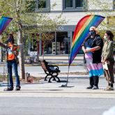 Celebrating Pride Month Yukon Party MLAs Geraldine Van Bibber (left) and Yvonne Clarke are seen Tuesday afternoon at the Yukon Pride Month Opening Circle at the Healing Totem Pole in downtown Whitehorse.