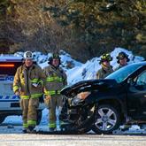 Collision Investigated Whitehorse firefighters work at the scene of a two-vehicle collision at about 8:50 Tuesday morning at the intersection of the Alaska Highway and Robert Service Way.