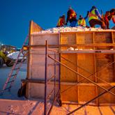 A Stompin' Good Time Yukon Rendezvous volunteers stomp the snow Sunday evening for the snow sculptures in Shipyards Park.