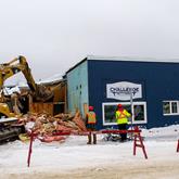 The End Of An Era The addition on the side of the Challenge building on Front Street is demolished Tuesday afternoon.