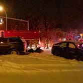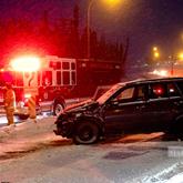 Rush-Hour Collision City firefighters work at the scene of a two-vehicle collision