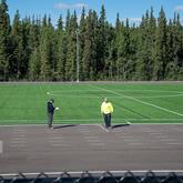 Final phase of the F.H. Collins track and field underway The final phase of the F.H. Collins track and field project, rubberizing the surface, will begin today.