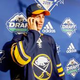 Dylan Cozens drafted seventh by Buffalo NHL commissioner Gary Bettman stepped onto the stage to a chorus of boos, his usual welcome, that reverberated throughout the Rogers Centre Arena.