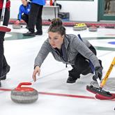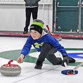 Future Star Neil Mikkelsen releases a stone at the 2015 Suzanne Bertrand Junior Bonspiel Sunday.