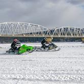 Rip-Roaring Good Time Pelly-Nisutlin MLA Stacey Hassard, right, competes in a 700 class drag race on Teslin Lake Sunday.